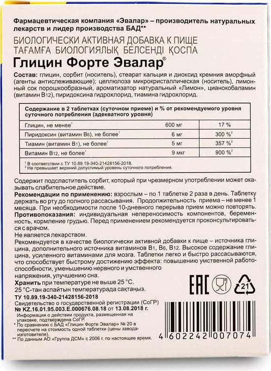 Glycine Forte Evalar 60 Tabs Глицин Форте Эвалар