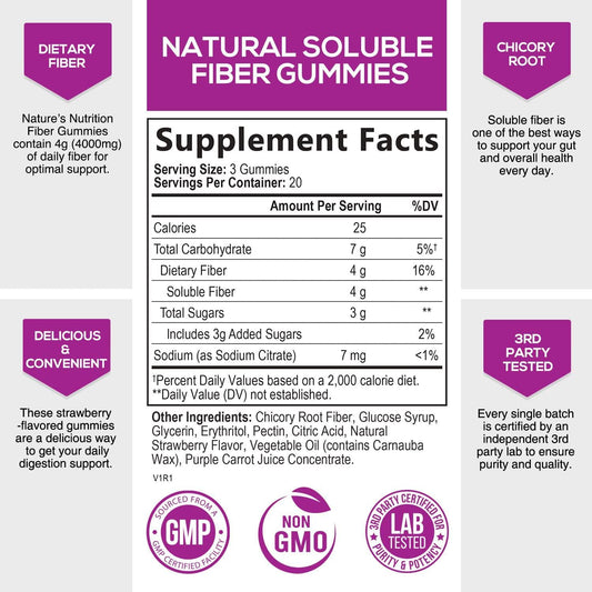 Fiber Gummies for Adults Extra Strength 4000mg - Daily Prebiotic Fiber Gummies - Delicious Strawberry Flavor - Natural Inulin Dietary Supplement for Digestion Support - 60 Vegan Gummies