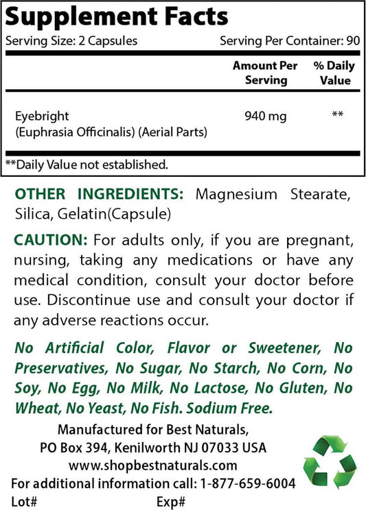 Best Naturals Eyebright 470 Mg 180 Capsules