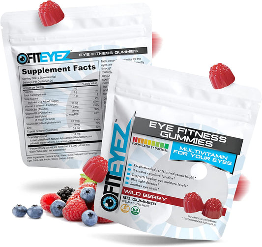 FitEyez Eye Fitness Gummies | Eye Vitamins with Lutein and Zeaxanthin Eye Support Supplements | Wild Berry Flavor | 30 Servings, 60 Chewable Gummies