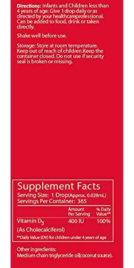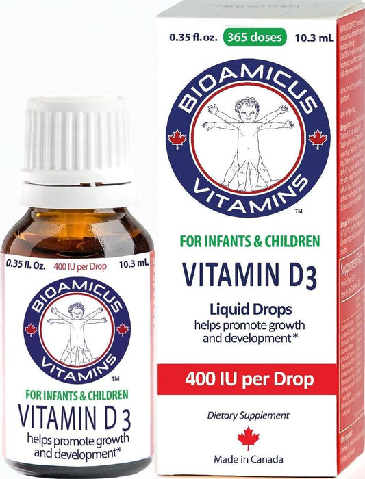 BioAmicus Vitamin D3 Liquid Drops. 1 dose, 1 Drop, 400 IU of Vitamin D3