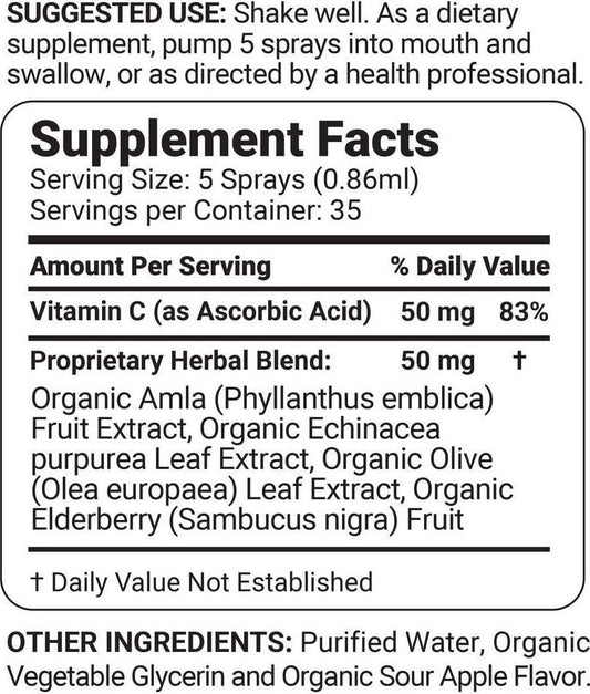 Bionic Boost All Natural Organic Immunity Spray with Vitamin C, Elderberry, for The Whole Family, Fruit Punch Flavor1 fl oz