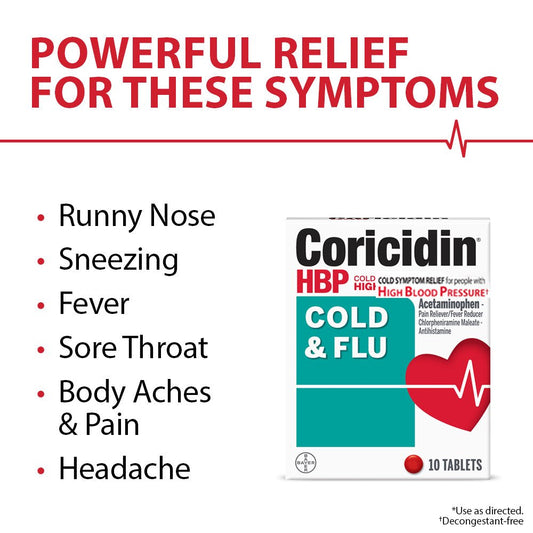 Coricidin HBP Cold & Flu Relief Tablets, High Blood Pressure, 20 Ct