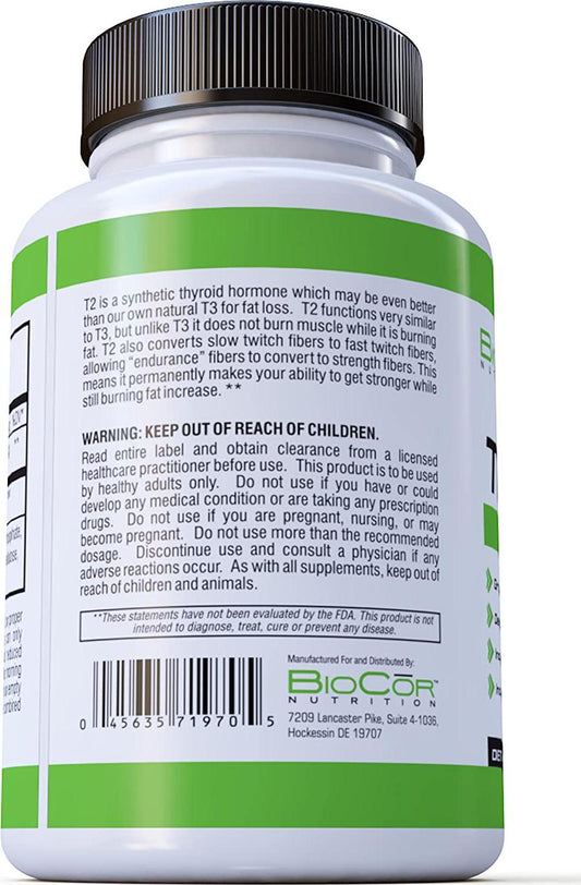 BioCor Nutrition Thyro-T2 Thyroid Hormone Fat Burner Supplement - Boost Metabolism and Lose Weight (60 Capsules - 1 Month Supply)