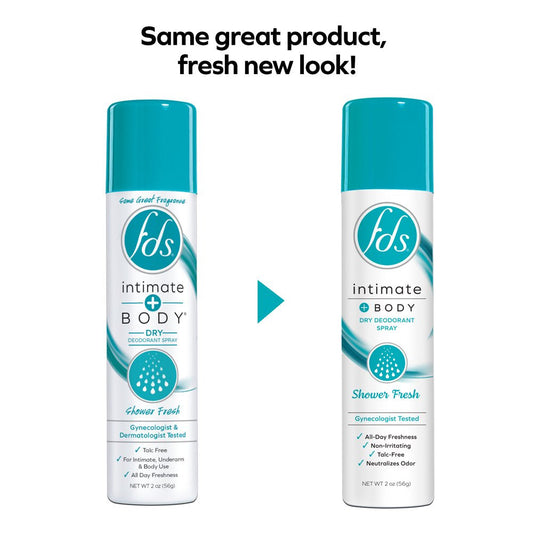 FDS Intimate + Body Dry Feminine Deodorant Spray, Shower Fresh, 3 Pack