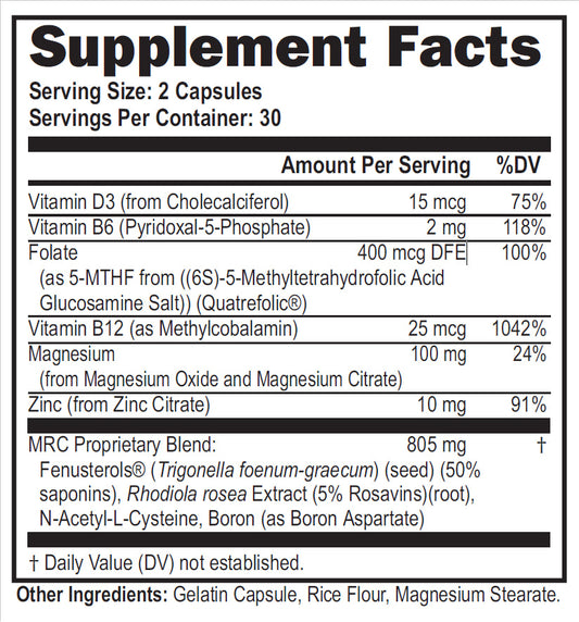 Enzyte MRC Testosterone Support - Vascularity, Energy, Muscle Strength, Stamina to Increase Workout Capacity for Men with Fenugreek, Rhodiola, NAC – 30 Day Supply (2 Pack)