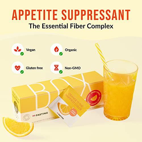 DoFasting - Essential Fiber Supplement Box, Cellulose Powder and Konjac Root Glucomannan Fiber Supplement for Intermittent Fasting, Vegan and Gluten-Free, Orange Flavor, 30 Pieces