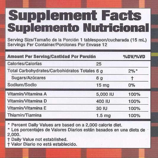 Emulsion De Escocia Cod Liver Oil with Vitamin E and B1 Cherry 6.5 Oz
