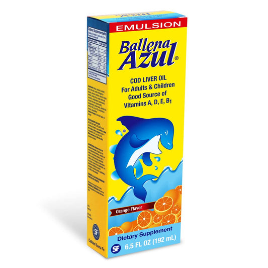 Ballena Azul Aceite De Hígado De Bacalao Para Adultos Y Niños, COD Liver Oil for Adults and Children, Good Source of Vitamins A,D,E, B1, Dietary Supplement, Omega 3, Inmune System Boost (ORANGE 15 OZ)