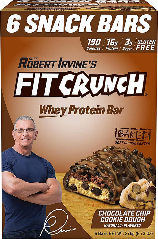 FITCRUNCH Snack Size Protein Bars, Designed by Robert Irvine, World s Only 6-Layer Baked Bar, Just 3g of Sugar and Soft Cake Core (6 Snack Size Bars, Chocolate Chip Cookie Dough)