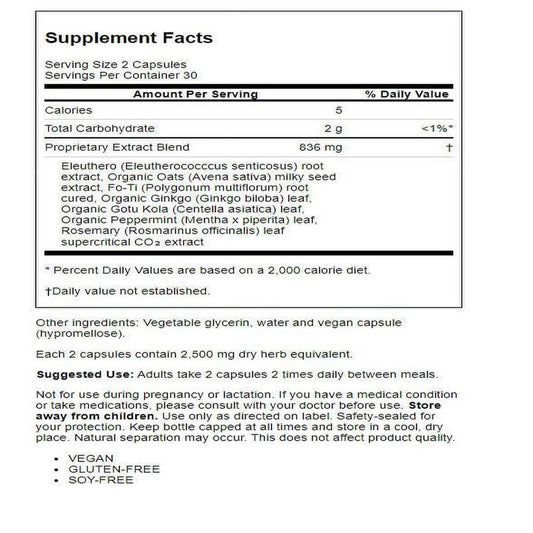 Gaia Herbs Mental Alertness, 60 Vegan Liquid Phyto-Caps