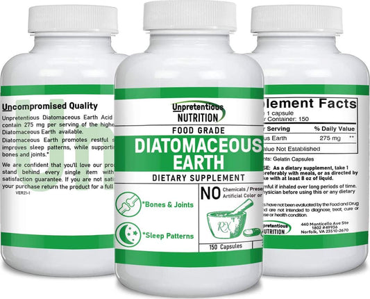 Diatomaceous Earth Supplement (150 Capsules, 550 mg per Serving) by Unpretentious Nutrition, Food Grade, Improves Sleep Patterns*, Strengthens Bones and Joints*, Total Body Wellness*, Lab Tested