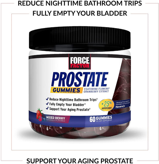 Force Factor Prostate Gummies, Saw Palmetto and Beta Sitosterol Supplement for Men, Reduce Nighttime Bathroom Trips, Fully Empty Your Bladder and Support Your Aging, White, 60 Count