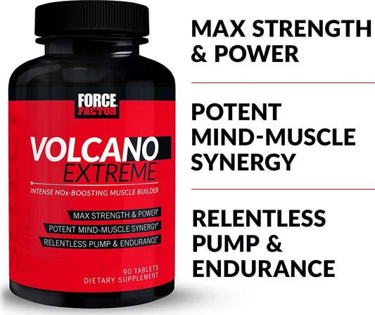 Force Factor Volcano Extreme Pre-Workout Nitric Oxide Booster with Creatine, 90 Tablets