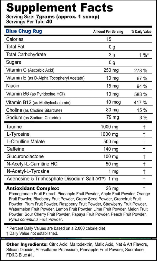 G Fuel Sour Blue Chug Rug Elite Energy Powder Inspired by Faze Rug, 10.44 oz (40 Servings)