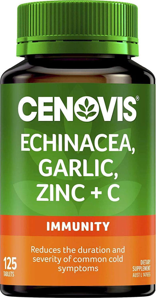 Cenovis Echinacea, Garlic, Zinc + C - Reduces Duration and Severity of Common Cold Symptoms - Antioxidant, 125 Tablets, Mostly Green (Pack of 1)