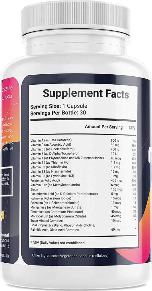 Beyond Liposomal Multivitamin for Men and Women - with Whole Food Vitamins, Organic Extracts - Natural Supplement - Best for Energy, General Health - Non-GMO Vegan - 30 Capsules