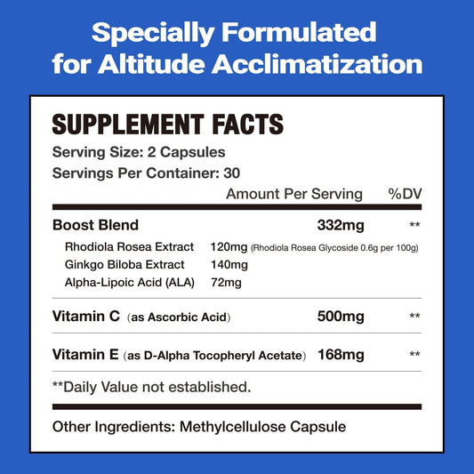 Altitude Sickness Prevention-High Altitude Relief-Ginkgo Biloba, Rhodiola Rosea, Vitamin C,E, Alpha Lipoic Acid, Allergen-Free, No-GMO (60 Capsules)