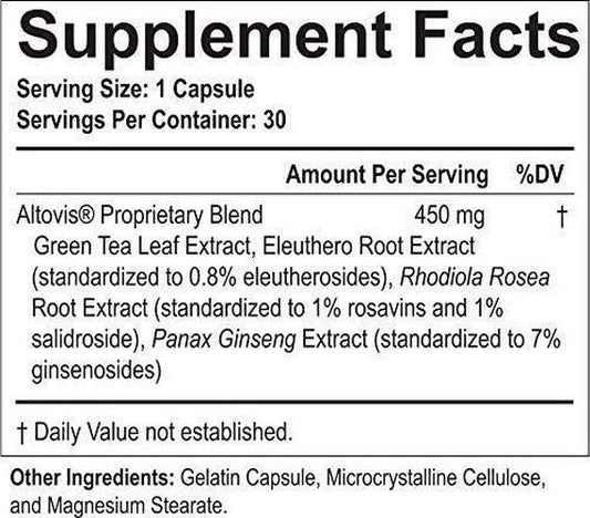 Altovis Energy Booster | Boost Energy Levels, Fight Occasional Fatigue, Restore Mental Alertness and Focus Naturally with Caffeine from Green Tea, Rhodiola, Ginseng, Eleuthero - 30 Capsules (2)