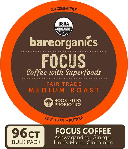BareOrganics Focus Coffee Single Serve 96ct Bulk Pack (15951)