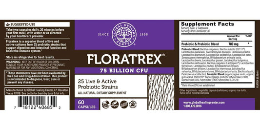 Global Healing Floratrex Probiotic Blend Supplement With Prebiotics For Healthy Digestion, Support Digestive Tract, and Normal Immune System - Men and Women - 75 Billion CFU, 25 Strains, 60 Capsules