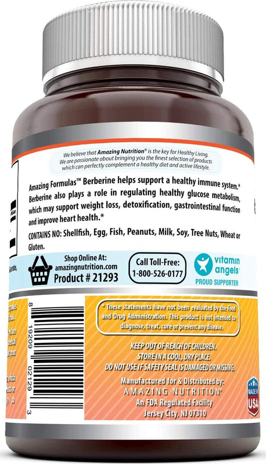 Amazing Formulas Berberine Plus 500 mg Capsules - Supports Immune System - Supports Glucose Metabolism - Aid in Healthy Weight Management (250 Count)
