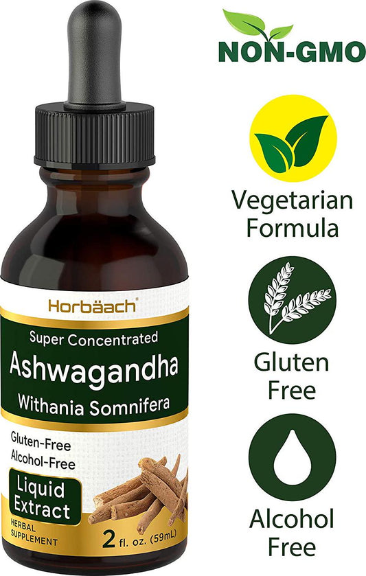 Ashwagandha Root Liquid Extract | 2 fl oz | Alcohol Free Tincture | Vegetarian, Non-GMO, Gluten Free Supplement | by Horbaach