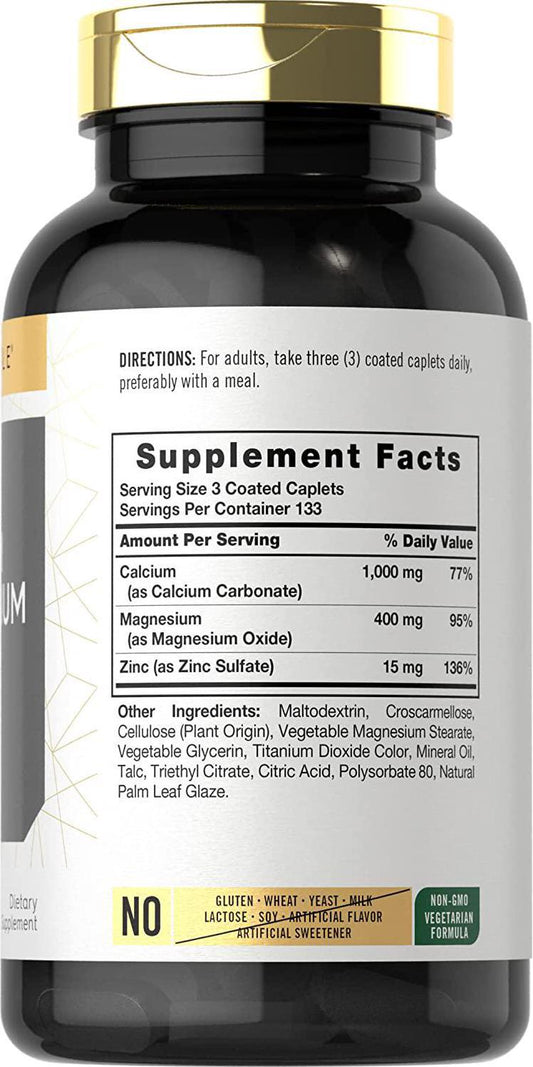 Carlyle Calcium Magnesium Zinc | 400 Caplets | Vegetarian, Non-GMO, Gluten Free Supplement