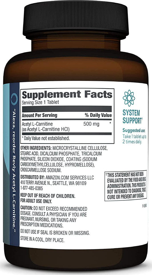 Brand - Revly Acetyl L-Carnitine, 500 mg, 100 Tablets, Vegan