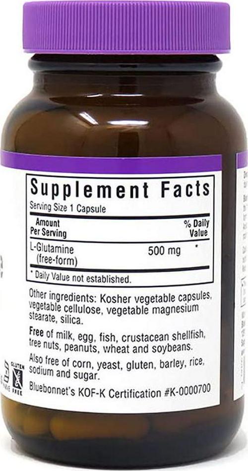 Bluebonnet Nutrition L-Glutamine 500mg, Supports Immune Function, Nitrogen Transporter, Soy and Gluten-Free, Non-GMO, Kosher Certified, Vegan, 50 Vegetable Capsules, White, 50 Count