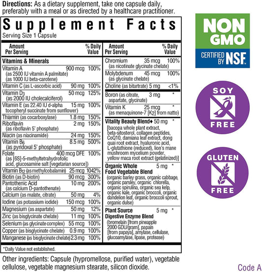 Bluebonnet Nutrition Ladies’ ONE 40+ Whole Food-Based Multiple, Women Multivitamin for Women 40+, Soy-Free, Non-GMO, Gluten Free, 60 Vegetable Capsules, 60 Servings
