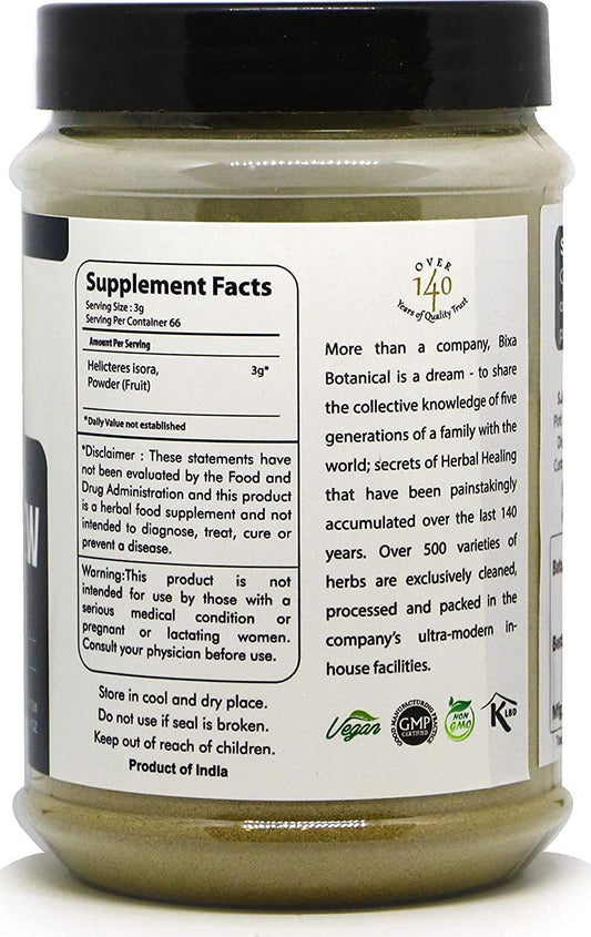 bixa BOTANICAL Indian Screw Tree Powder(Helicteres Isora) | Useful In Intestinal Pain and Spasm - 7 Oz (200G)
