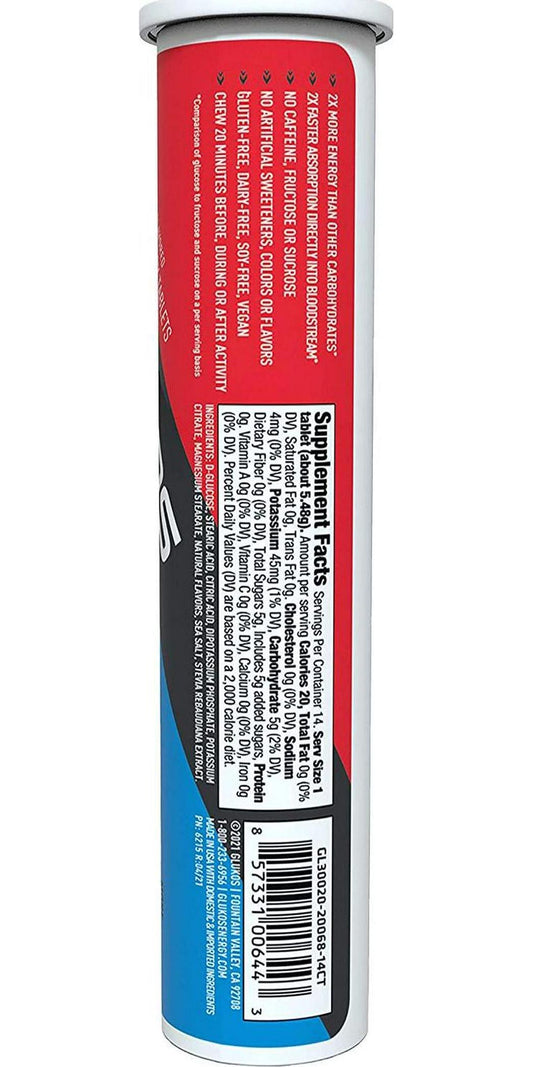 Glukos Energy Chewable Tablets. 1 Tube of 14 Tablets. Fruit Punch Flavor, (GL30020-20068-14CT)