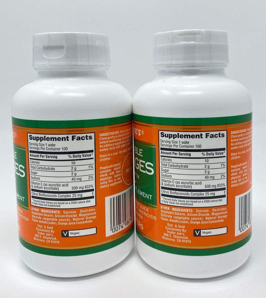 2 Bottles Trader Joe's Chewable Oranges and C Dietary Supplement