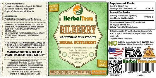 Bilberry (Vaccinium Myrtillus) Glycerite, Dried Berries Alcohol-FREE Liquid Extract 2 oz