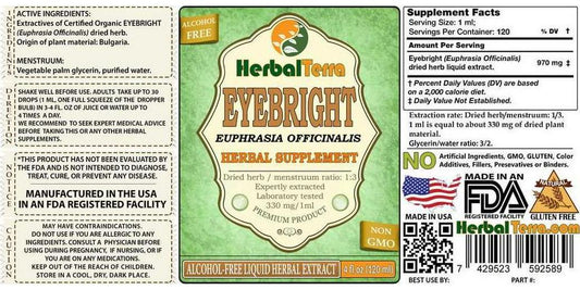 Eyebright (Euphrasia Officinalis) Glycerite, Organic Dried Herb Alcohol-FREE Liquid Extract 2 oz