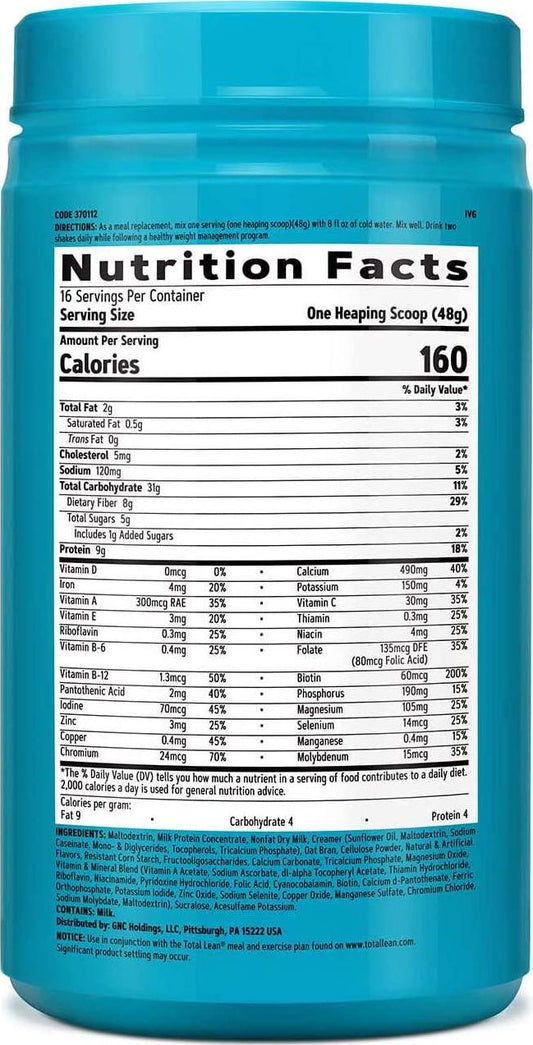 GNC Total Lean | Lean Shake 25 Protein Powder | High-Protein Meal Replacement Shake | French Vanilla | 16 Servings