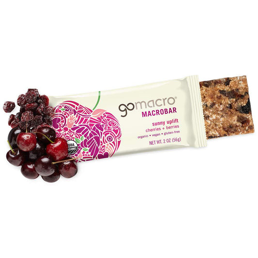 GoMacro MacroBar Organic Vegan Snack Bars Cherries + Berries 2 Ounce Bars (Pack of 12)