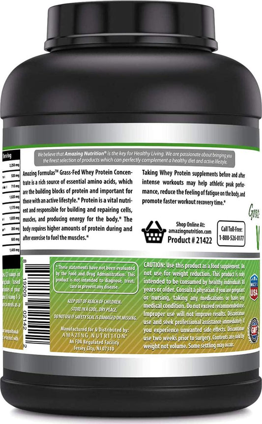 Amazing Formulas Grass FED Whey Protein 5 Lbs (Non-GMO, Gluten Free) -Made with Natural Sweetener and Flavor - rBGH and RBST Free -Supports Energy Production and Muscle Growth (Unflavored, 5 Lb)