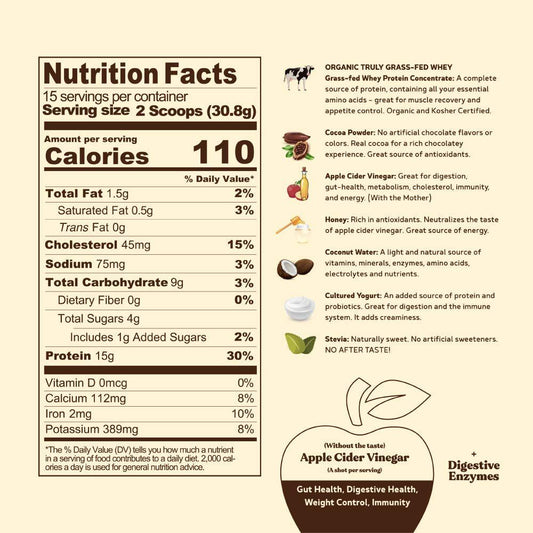 Best Bodies for Life - Meal Replacement Powder with A Shot of Apple Cider Vinegar - 15g Organic Grass Fed Whey Protein Lifestyle Shake - 15 Servings, Cocoa Cream