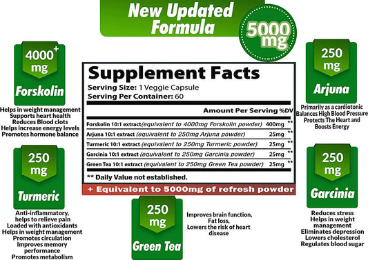 2 Packs Organic Forskolin Extract Capsules 5000mg and Turmeric Curcumin, Arjuna, Garcinia Cambogia, Green Tea