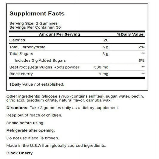 Country Farms Bountiful Beets Gummies, Circulation Superfood, Nitric Oxide, Heart Health, Black Cherry Flavor, 60 Gummies
