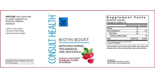 Consult Health Biotin Boost Biotin Rich Gummies for Gorgeous Hair, Skin and Nails 10,000 mcg Dietary Supplement Raspberry Flavor 60 Count (1 Pack)