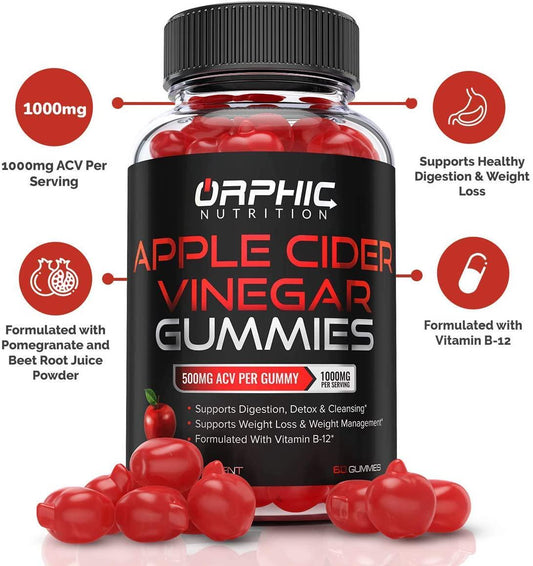 Apple Cider Vinegar + Vitamin C Gummies - Formulated to Support Healthy Weight, Normal Energy Levels and Gut Health* - Made up of Vitamin C Antioxidants for Adults and Kids*