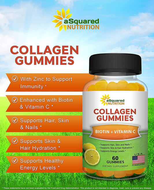 Collagen Gummies with Biotin, Zinc, Vitamin C and E - Collagen Protein Supplements for Women and Men - Alternative to Collagen Peptides Powder, Pills and Capsules - Hair, Skin and Nails - 60 Gummy Ct