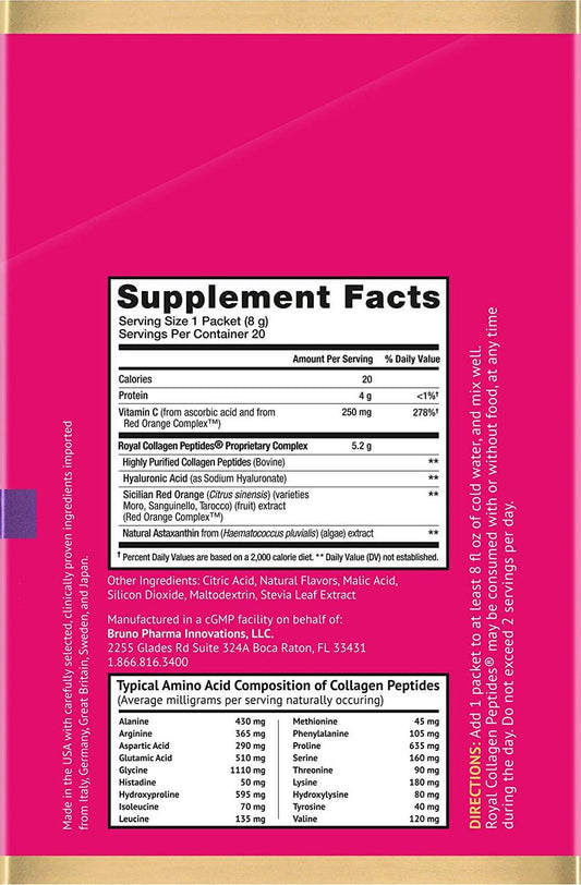 Bruno MD Royal Collagen Peptides - Beauty from Within, Clinically Proven, Dietary Supplement, Improves Skin and The Look of Hair, Nails and Cellulite,Blended with Vitamin C (Strawberry Acai)
