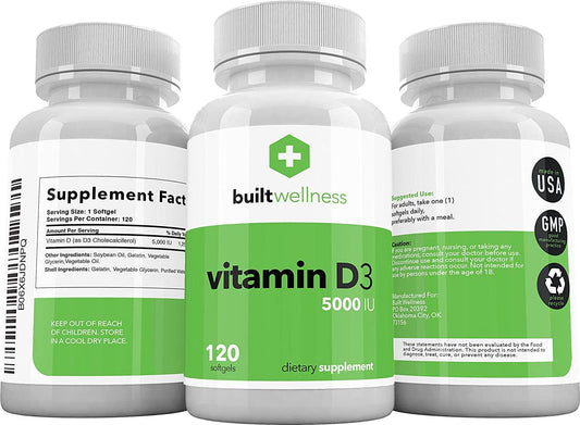 Built Wellness Vitamin D3 Supplement, 5,000 iu, 120 Softgels