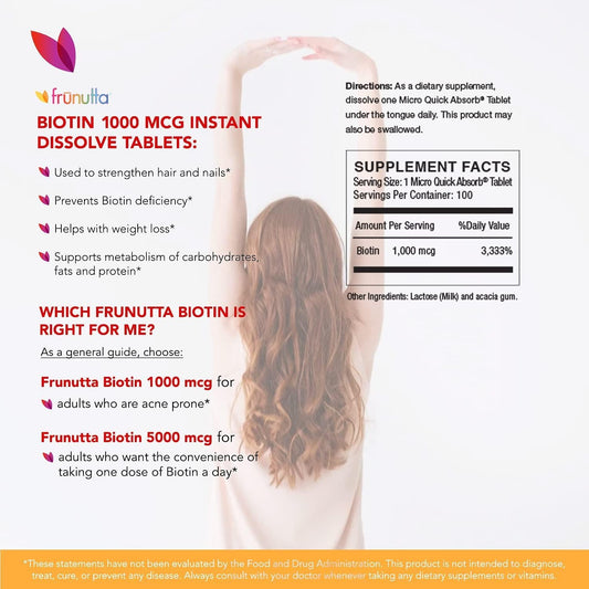 Frunutta Biotin 1000 mcg, Beautiful Hair, Healthy Nails, Under The Tongue Instant Dissolve Tablets, 3 Month Supply, Proudly Made in USA