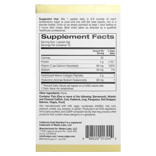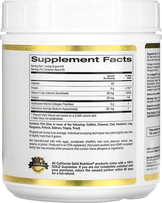 California Gold Nutrition CollagenUP Marine Collagen Hyaluronic Acid Vitamin C Unflavored 16 36 oz 464 g
