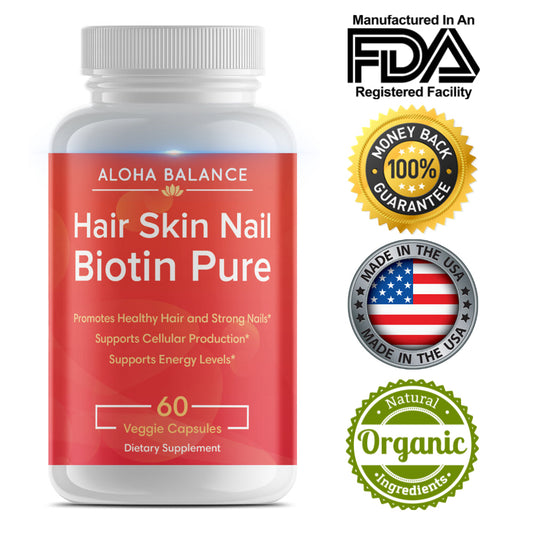Biotin Pure - Hair Skin Nail - Promotes Healthy Hair and Strong Nails for Women & Men by Aloha Balance